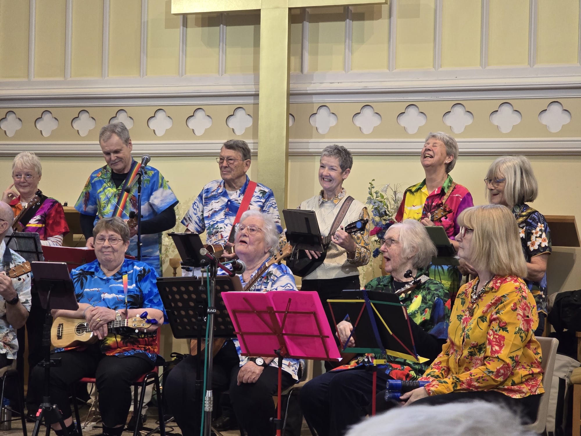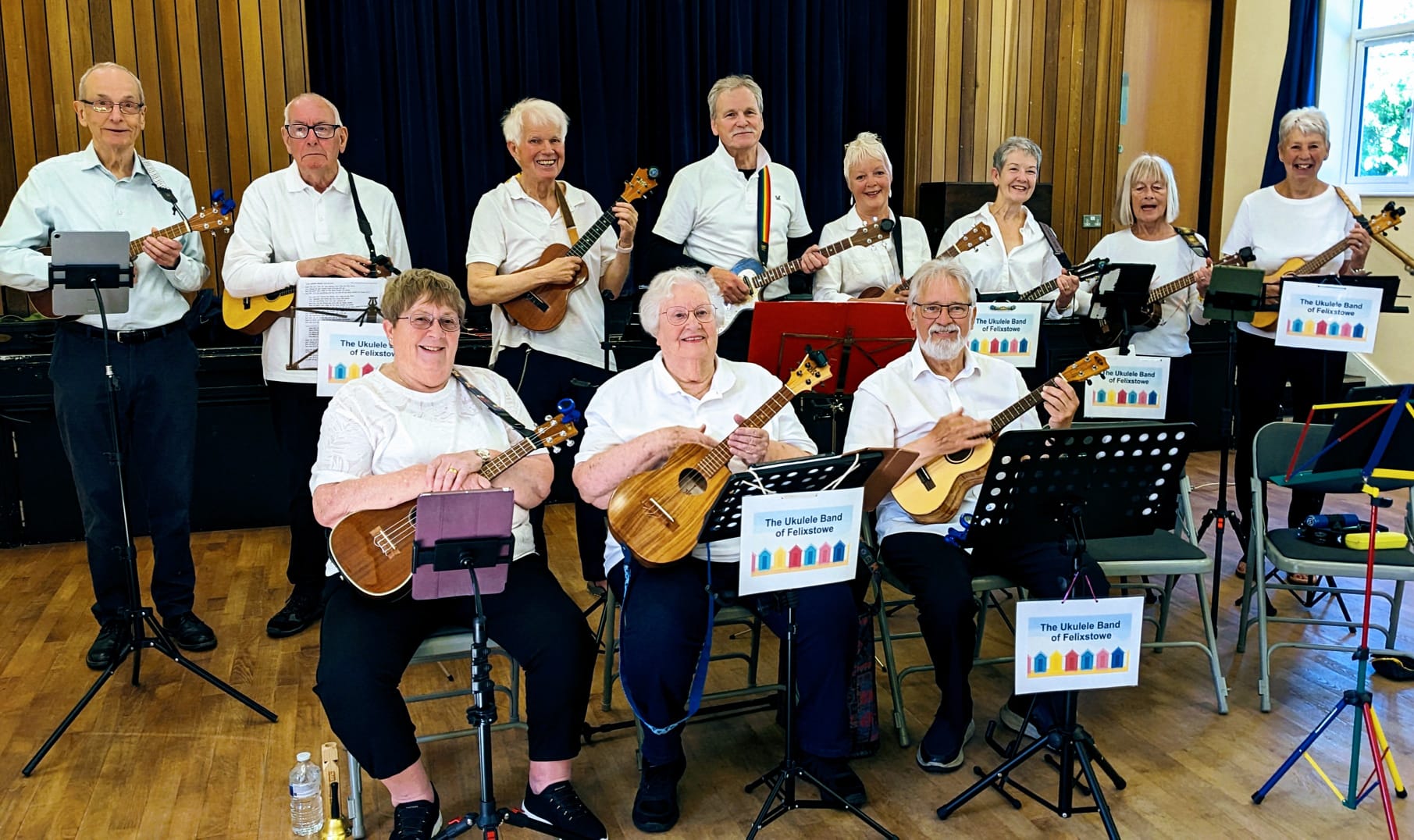 We are the Ukulele Band of Felixstowe — a lively group, mostly retired, who still know how to have fun and love making music together! United by a shared passion for the ukulele and a good singalong, we bring energy, smiles, and toe-tapping tunes wherever we go.
